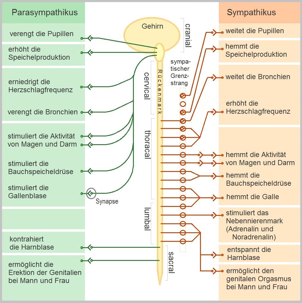Die Probleme können jedes Organsystem betreffen, da jedes Organ vom vegetativen Nervensystem innerviert ist, wie du in der Grafik erkennen kannst.